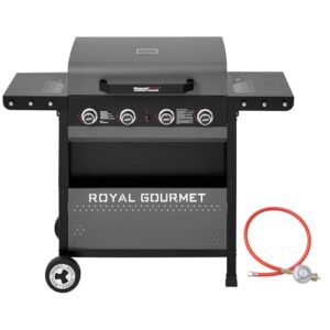 Royal Gourmet 4-Brenner Gasgrill 10 kW Grillwagen mit klappbaren Seitenablagen, Ablagekorb, Outdoor Gasgrill für Balkon, Terrasse, Garten und Camping