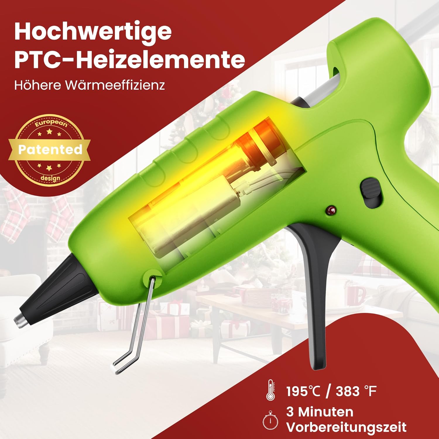 - Sicheres Handling für die ganze Familie: Feuerfeste Silikonspitze schützt vor Verbrennungen, während die eingebaute Sicherungsfuse Überhitzung verhindert – ideal auch für Bastelstunden mit Kindern