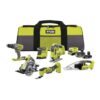 RYOBI 18V ONE+ 8-tlg, Akku-Combo-Kit RCK184O-242SZL, Schlagbohrschrauber, Winkelschleifer, Handkreissäge, Delta-Vibrationsschleifer, 2x Akkus (4,0Ah & 2,0Ah), Ladegerät, Werkzeugtasche