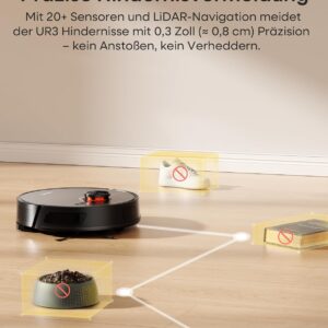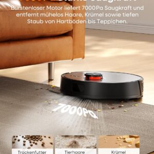 Der Saugroboter mit Wischfunktion überzeugt durch seine Kombination aus purer Saugkraft und intelligenter Hinderniserkennung. Mit einer Stärke von 7000Pa setzt er sich deutlich von herkömmlichen Haushaltsgeräten ab und ist in der Lage, auch festgetretenen Schmutz effektiv vom Boden zu lösen. Die integrierte LiDAR-Navigation ist dabei das Herzstück: Sie erfasst den Grundriss der Räumlichkeiten präzise, sodass kein Bereich ausgelassen wird.