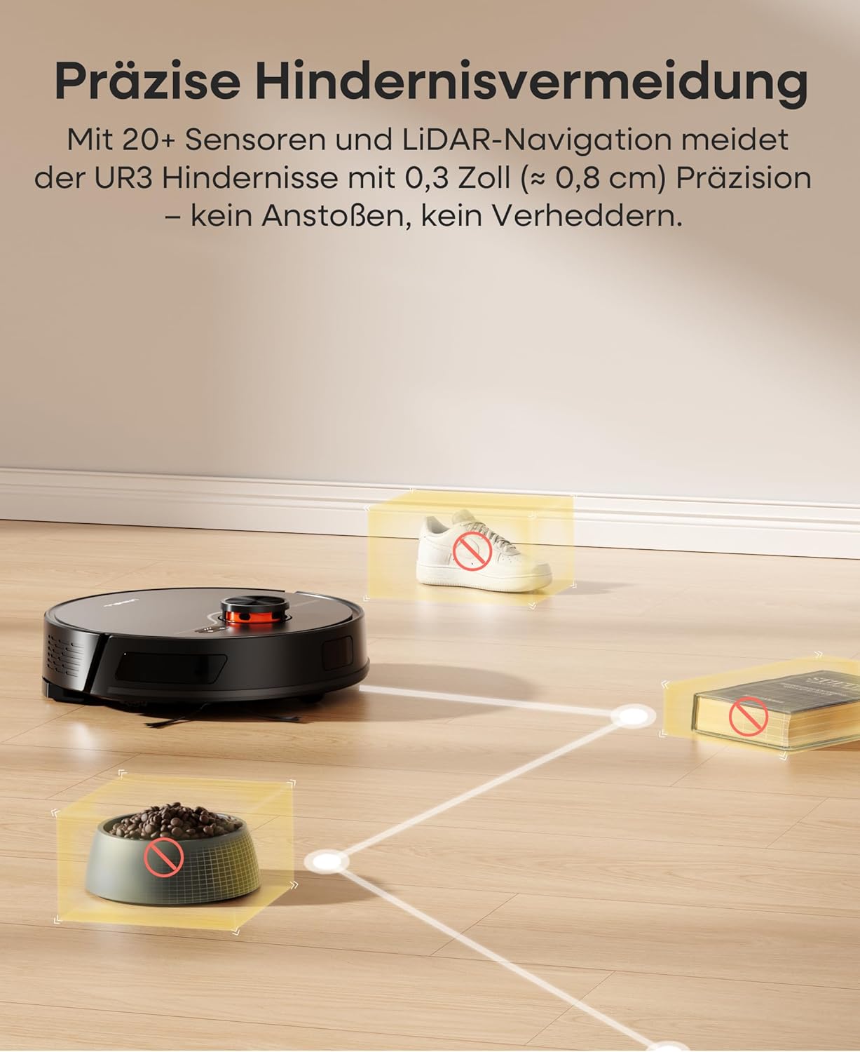 Aus unserer Erfahrung in der Anwendung ist besonders die 3.5L Absaugstation ein echter Zeitsparer. Nach dem Saugvorgang fährt das Gerät die Station an und entleert den internen Auffangbehälter vollautomatisch. Das entlastet dich im Alltag massiv, da du nicht nach jeder Runde den Behälter leeren musst. Die Steuerung erfolgt intuitiv über die App, in der du gezielt Reinigungszonen festlegen kannst.