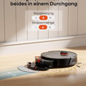 - Effiziente Wischfunktion: Kombiniert das Saugen mit einem Wischgang, um feinen Staub zu binden und Oberflächen streifenfrei zu halten.