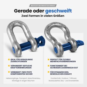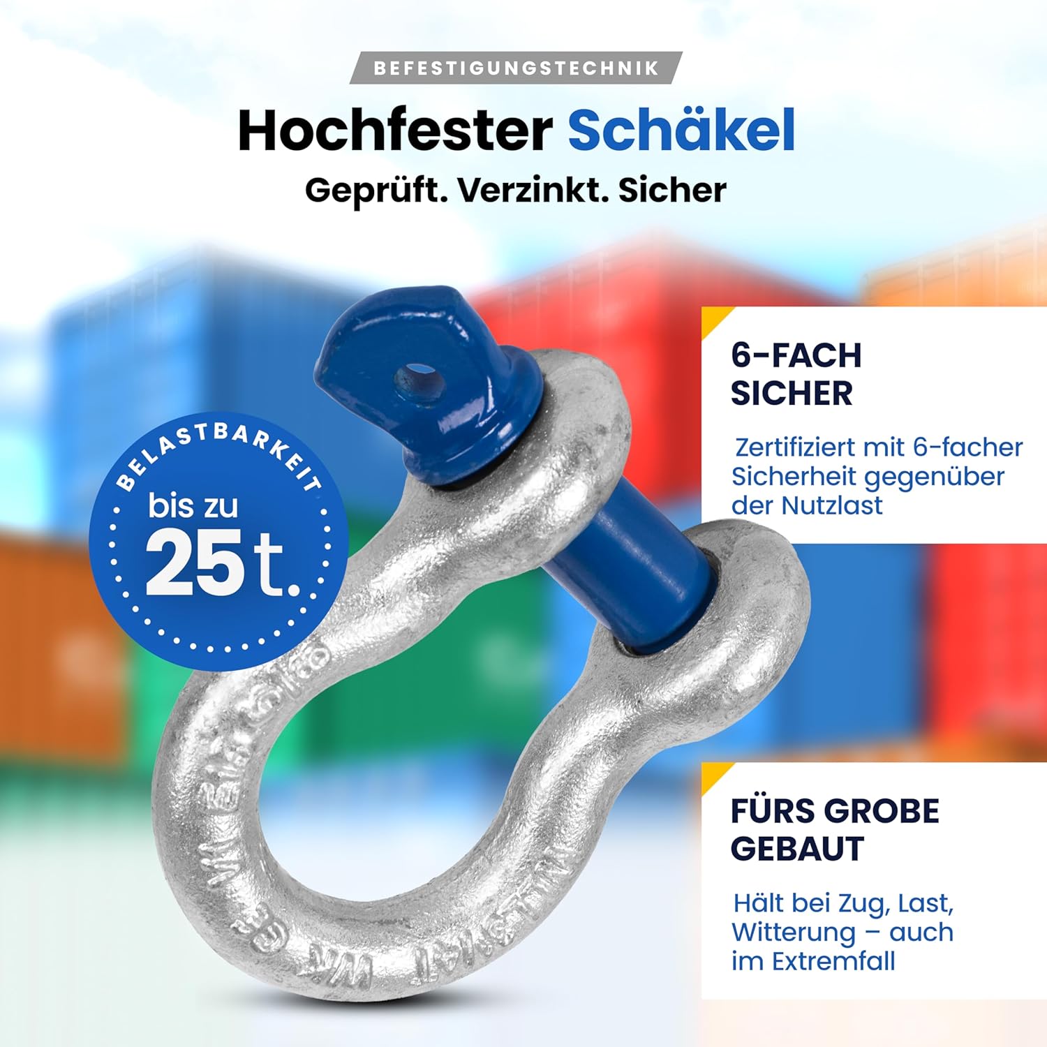 - Maximale Lastaufnahme: 3,25 Tonnen Tragkraft pro Schäkel ermöglichen den sicheren Einsatz bei schwerem Gerät und großen Lasten.