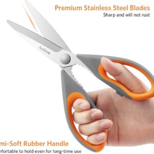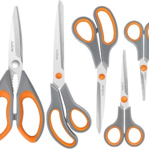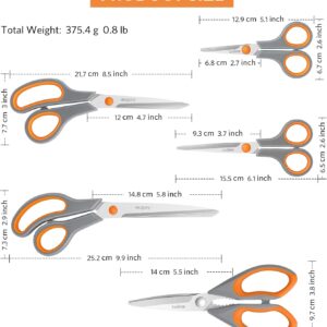 Schere, Küchenschere mit Scharfen Edelstahlklingen und Weichen Griffen, Multifunktionales Scherenset, 5PCs, Orange/Grau