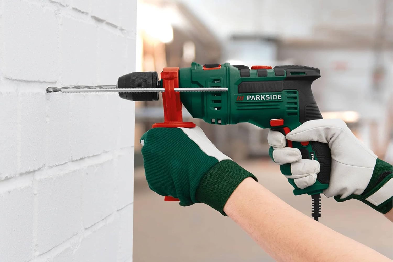750 Watt bei 230 Volt bedeuten konstante Leistung ohne Einbrüche. 3000 Umdrehungen pro Minute im Leerlauf sorgen für saubere Bohrlöcher auch in anspruchsvollen Materialien. Die Radialarretierung des Bohrfutters ermöglicht schnelle Schraubarbeiten – echte Zeitersparnis auf der Baustelle. Das Metallgehäuse des Tiefenanschlags hält dauerhaftem Einsatz stand.