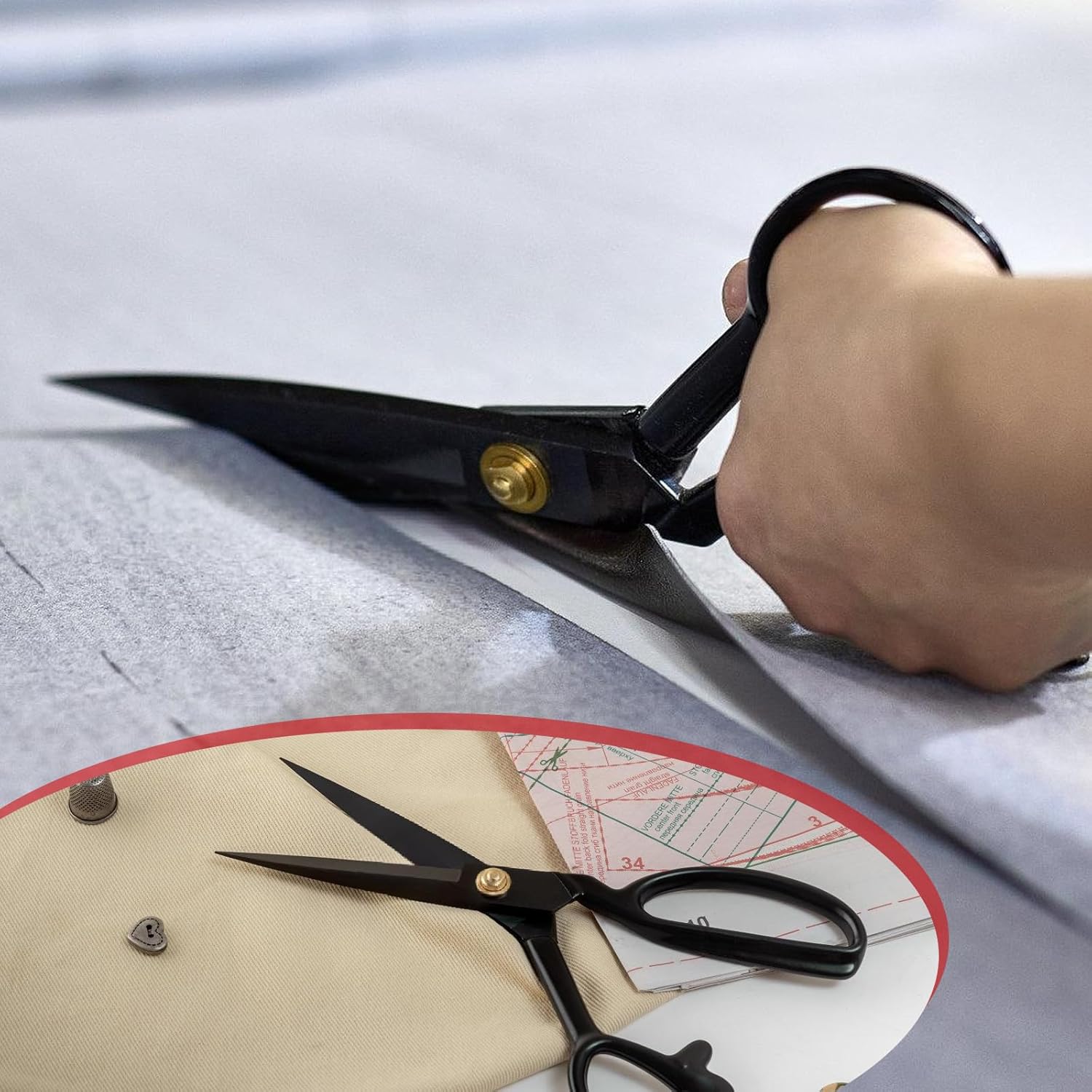Nach Tests in Werkstätten hat sich gezeigt, dass die Schere auch nach mehreren Stunden Dauereinsatz noch komfortabel in der Hand liegt. Das Gewicht von 290 Gramm sorgt für die nötige Stabilität beim Schnitt, ohne zu Verkrampfungen zu führen. Besonders bei der Verarbeitung von mehrlagigen Stoffen – beispielsweise beim Zuschneiden von Futterstoffen zusammen mit dem Oberstoff – liefert die Schere saubere Ergebnisse ohne Lagenverschiebung.