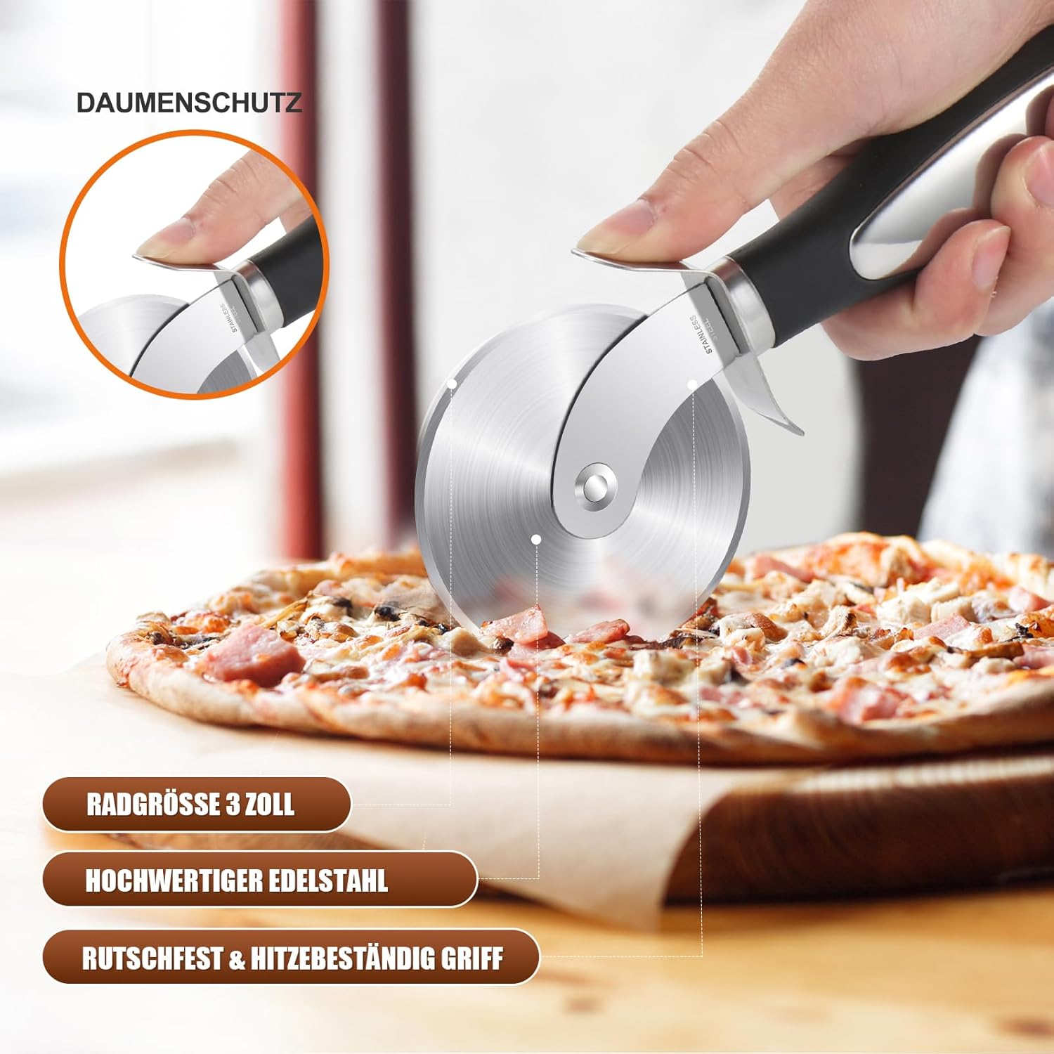 Produktbeschreibung für SCHVUBENR Premium Pizzaschneider