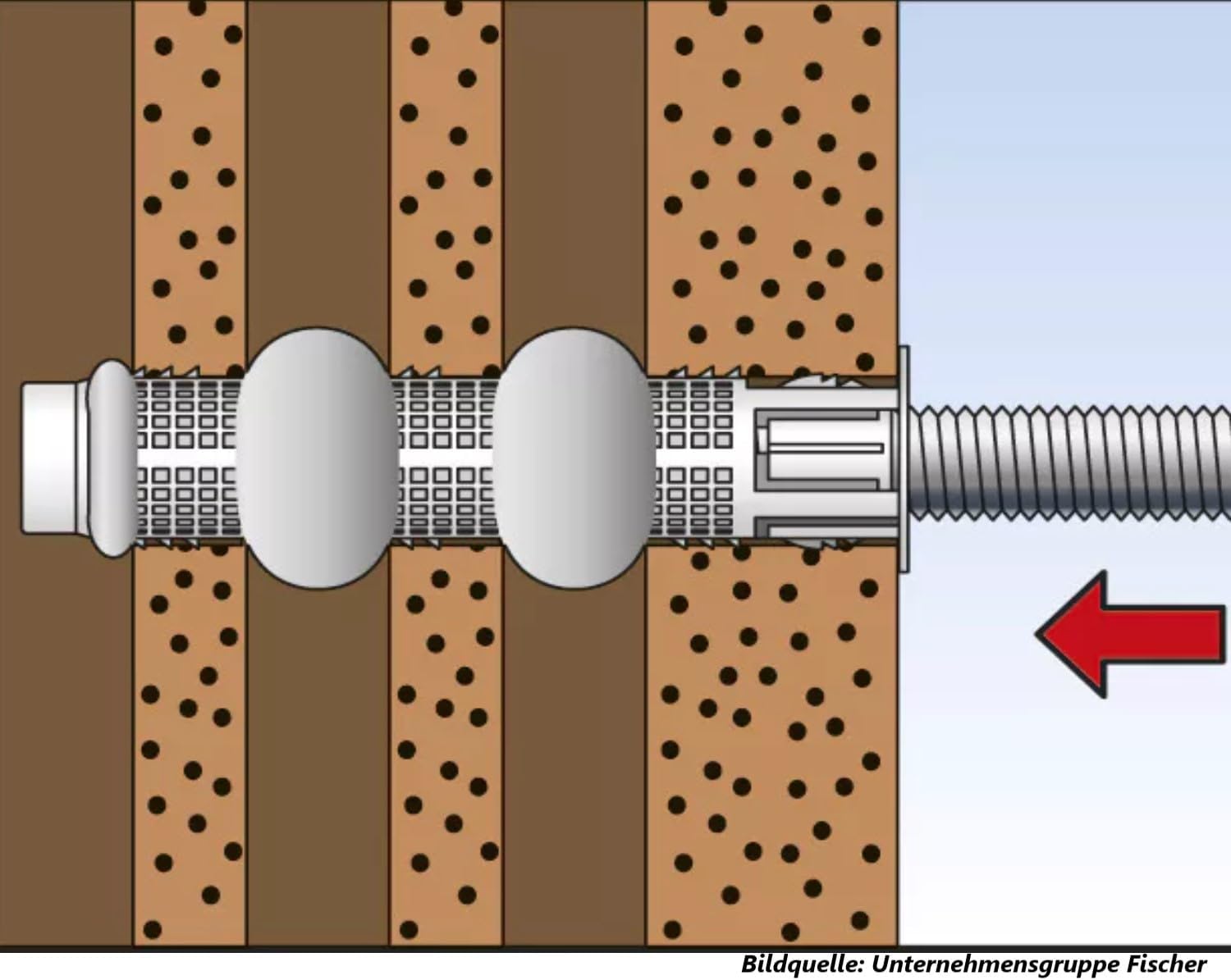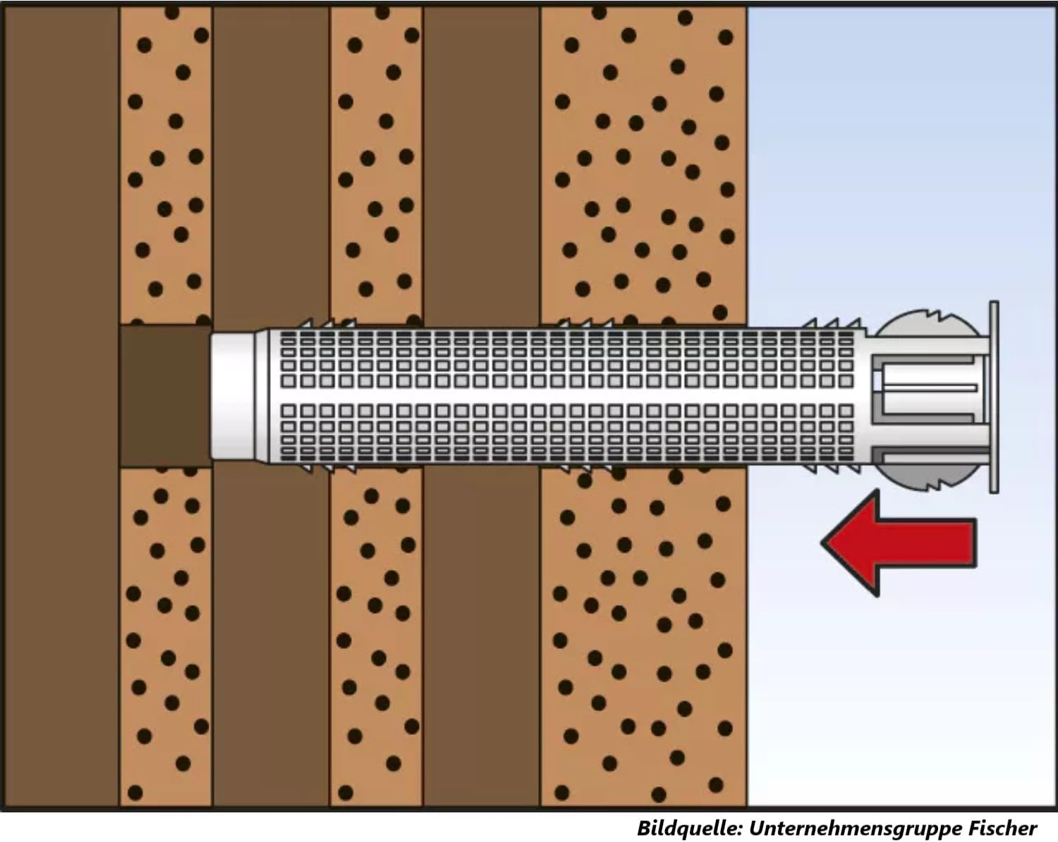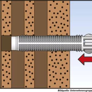 Praxis-Tipp: Achte bei Lochsteinmauerwerk zwingend auf die Verwendung der beiliegenden Siebhülsen. Diese verhindern, dass der Mörtel im Hohlraum verschwindet, und sorgen stattdessen für eine formschlüssige Verbindung.