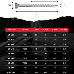 ![SCREW REBEL® Spanplattenschrauben 4,5x60 mm [200 Stück] – Edelstahl A2 rostfrei mit Teilgewinde & Senkkopf – TX20 Antrieb – Holzschrauben mit ETA-Zulassung – Bild 2](https://werkking.de/wp-content/uploads/2026/04/713e7izOMaL._SL1500_-2.jpg)
