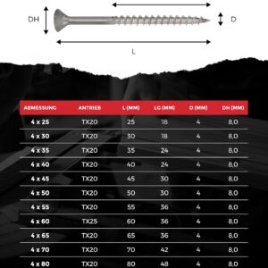 ![SCREW REBEL® Spanplattenschrauben 4x25 mm [100 Stück] – Edelstahl A2 rostfrei mit Teilgewinde & Senkkopf – TX20 Antrieb – Holzschrauben mit ETA-Zulassung – Bild 5](https://werkking.de/wp-content/uploads/2026/04/71lQ7ArkKXL._SL1500_.jpg)