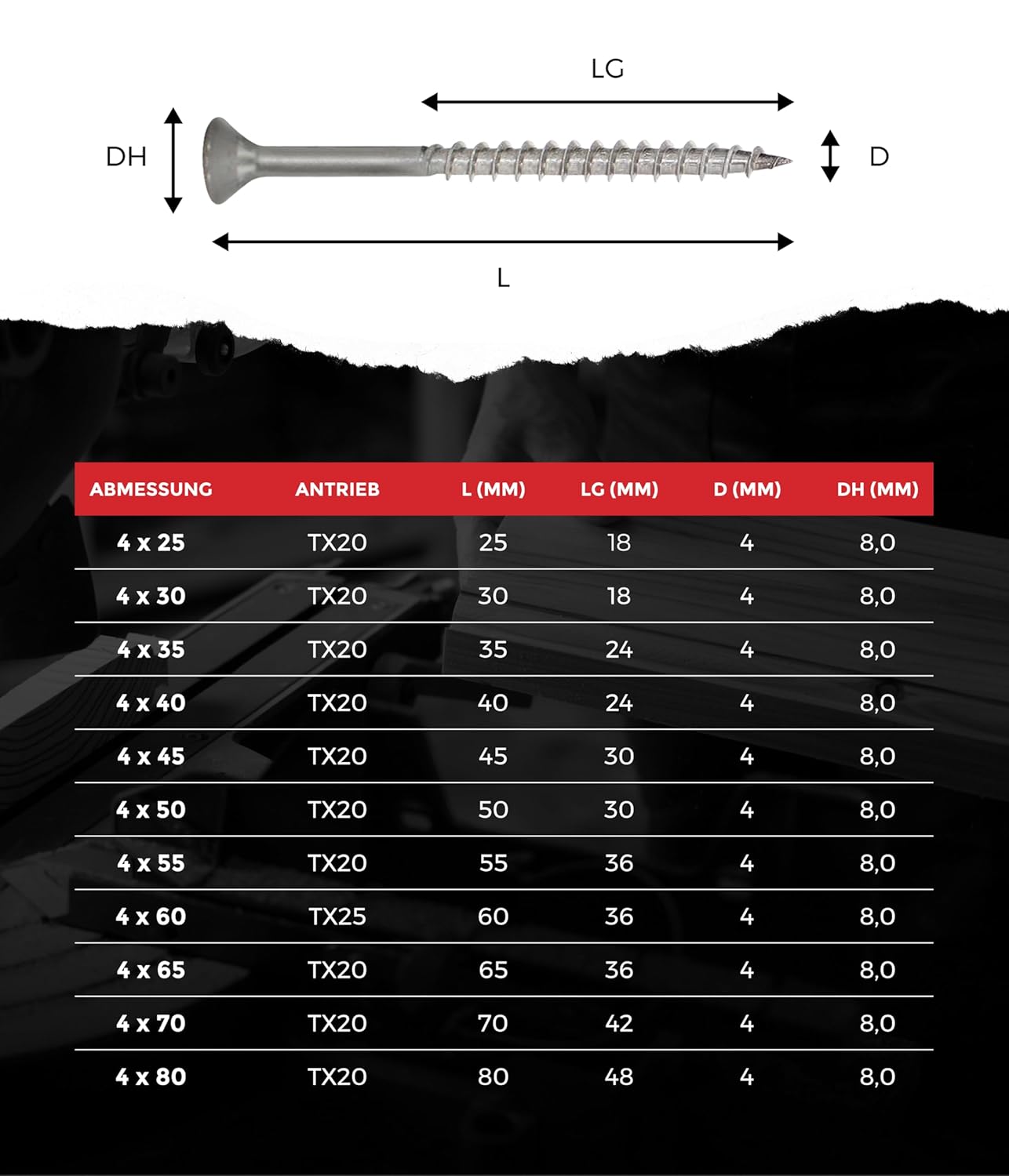 ![SCREW REBEL® Spanplattenschrauben 4x25 mm [100 Stück] – Edelstahl A2 rostfrei mit Teilgewinde & Senkkopf – TX20 Antrieb – Holzschrauben mit ETA-Zulassung – Bild 4](https://werkking.de/wp-content/uploads/2026/04/81wqCEuU9KL._SL1500_-1.jpg)
