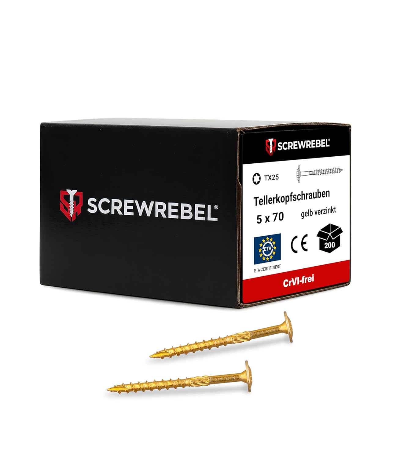 ![SCREW REBEL® Tellerkopfschrauben 5x70mm – [200 Stück], – Kraftsparend dank Reibteil & Cut-Spitze – selbstschneidend, TX25 Antrieb – Holzbauschrauben mit ETA-Zulassung – CrVI-frei & korrosionsbeständig – Bild 4](https://werkking.de/wp-content/uploads/2026/04/91iGq8v9kYL._SL1500_-3.jpg)