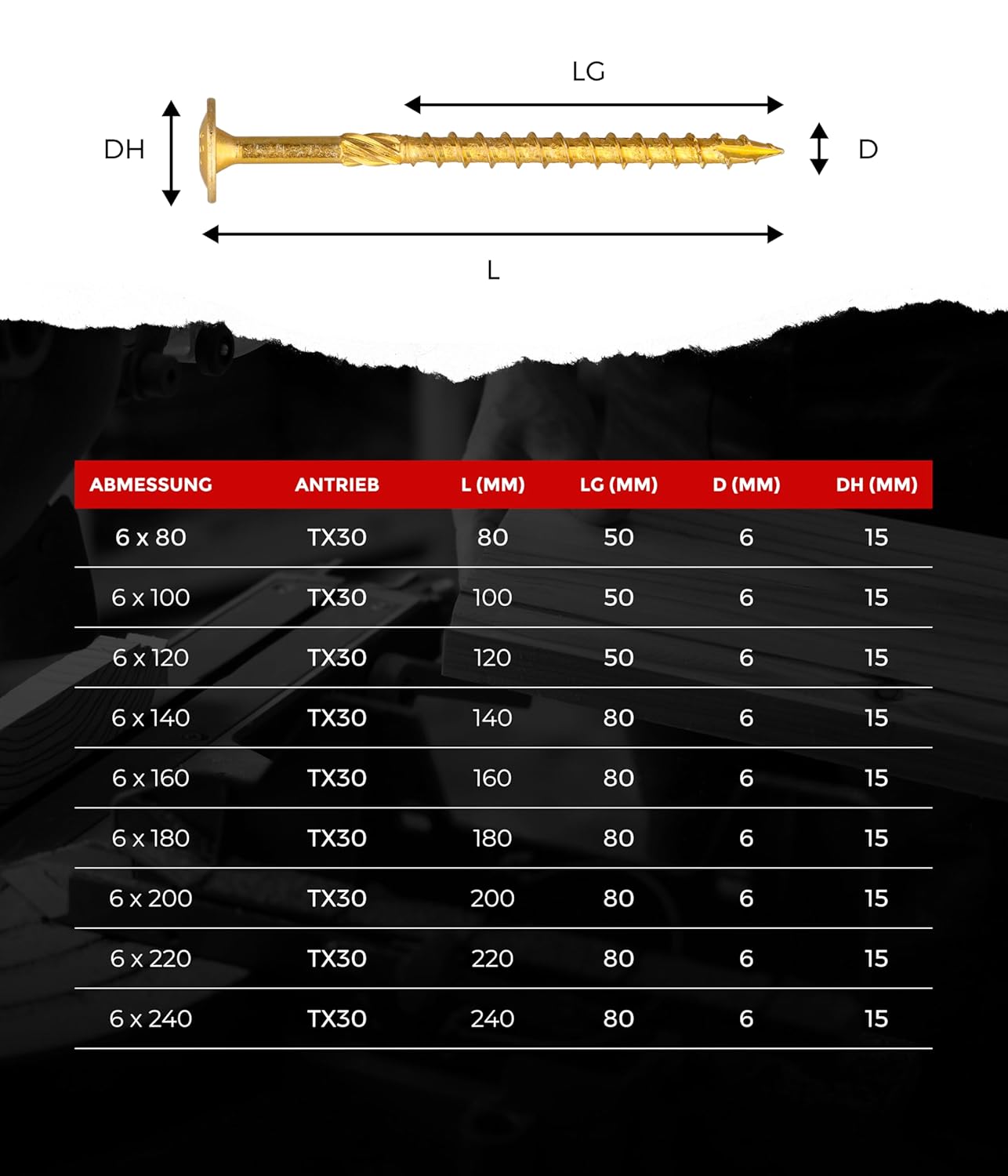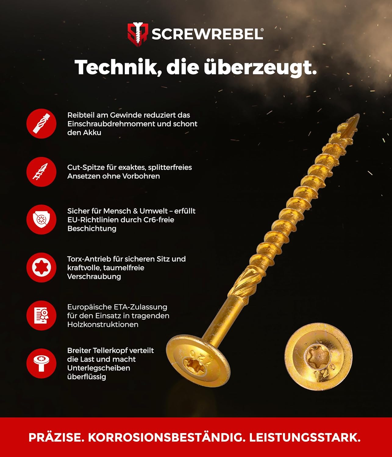 ![SCREW REBEL® Tellerkopfschrauben 6x80mm –[100 Stück], – Kraftsparend dank Reibteil & Cut-Spitze – selbstschneidend, TX30 Antrieb – Holzbauschrauben mit ETA-Zulassung – CrVI-frei & korrosionsbeständig – Bild 4](https://werkking.de/wp-content/uploads/2026/03/91iGq8v9kYL._SL1500_.jpg)