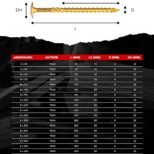SCREW REBEL® Tellerkopfschrauben 8x140mm – [50 Stück], – Kraftsparend dank Reibteil & Cut-Spitze – selbstschneidend, TX40 Antrieb – Holzbauschrauben mit ETA-Zulassung – CrVI-frei & korrosionsbeständigSCREW REBEL® Tellerkopfschrauben 8x140mm – [50 Stück], – Kraftsparend dank Reibteil & Cut-Spitze – selbstschneidend, TX40 Antrieb – Holzbauschrauben mit ETA-Zulassung – CrVI-frei & korrosionsbeständig