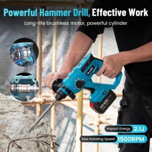 Seesii 4-IN-1 Akku Bohrhammer Set: Schlagbohrmaschine 2.1 J, Bürstenloser Motor, Anti-Vibrationsgriff, LED-Licht, mit 2 * 4.0Ah Akkus & Ladegerät, 3 Bohrer SDS-Plus & 2 Meißel im HandwerkerkofferSeesii 4-IN-1 Akku Bohrhammer Set: Schlagbohrmaschine 2.1 J, Bürstenloser Motor, Anti-Vibrationsgriff, LED-Licht, mit 2 * 4.0Ah Akkus & Ladegerät, 3 Bohrer SDS-Plus & 2 Meißel im Handwerkerkoffer