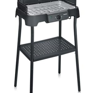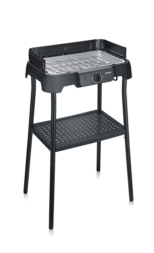 Severin Tischgrill mit Standfuß, Standgrill & Tischgrill (Innen- & Außennutzung), Balkon & Küche, Temperaturen 40-220°C, schnelles Aufheizen, 39x23cm, leichte Reinigung, 2000W, schwarz, PG 8596