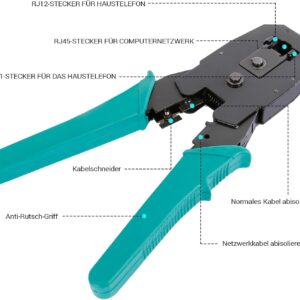 - 3-in-1 Crimpzange: Ermöglicht das Schneiden, Abisolieren und Crimpen von RJ45, RJ11 und RJ12 Steckern mit einem Arbeitsschritt, was die Montagezeit erheblich verkürzt.