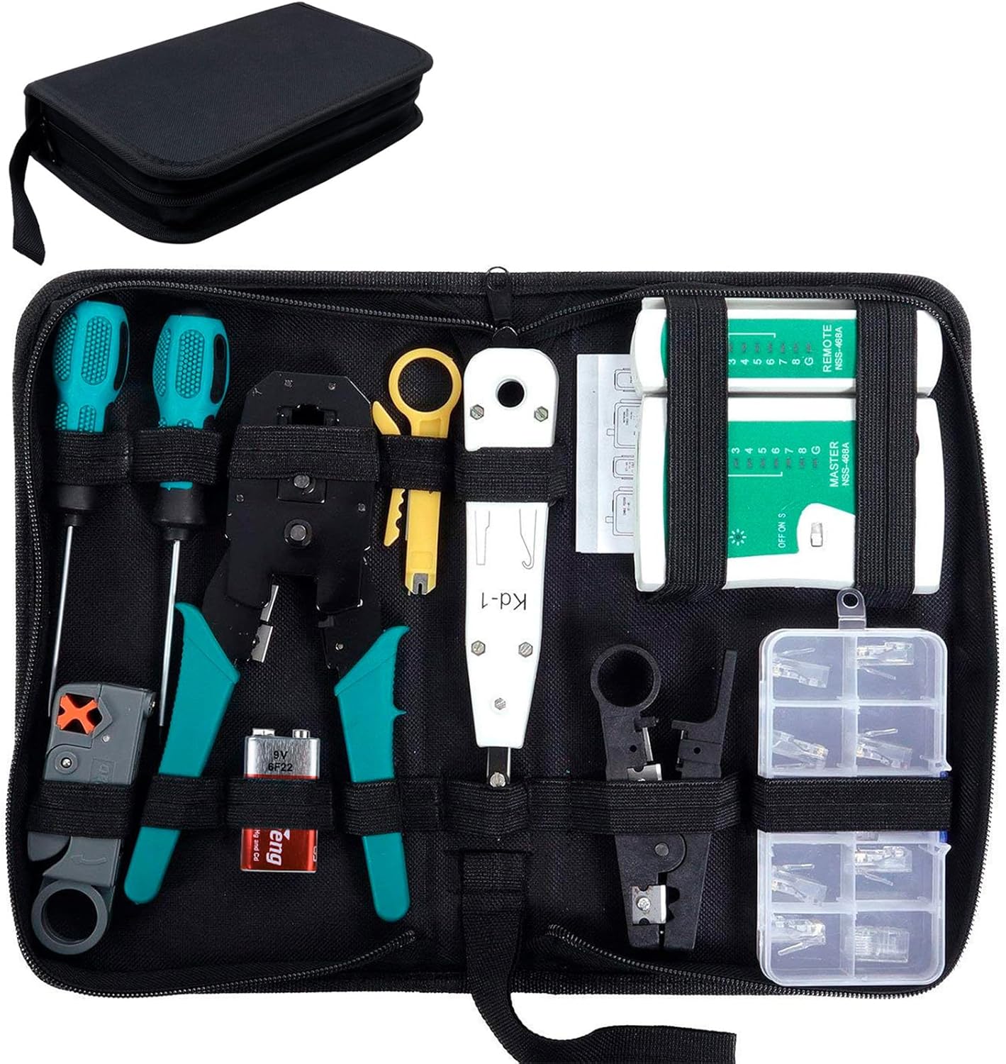 - Sofort einsatzbereit: Das Set enthält bereits die notwendige 9V Batterie sowie 10 RJ45-Stecker, sodass du direkt nach dem Auspacken mit der Arbeit beginnen kannst.