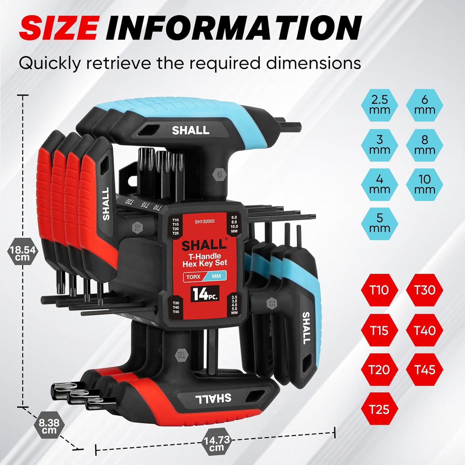 Das Shall 14-teiliges Innensechskantschlüssel-Set ist die ideale Grundausstattung für ambitionierte Heimwerker, Mechaniker und Technik-Begeisterte, die Wert auf Ordnung und Präzision legen. Mit seiner Kombination aus metrischen Sechskant- und Torx-Profilen deckt dieses Set alle gängigen Verschraubungen an Fahrzeugen, Möbeln und Maschinen ab.