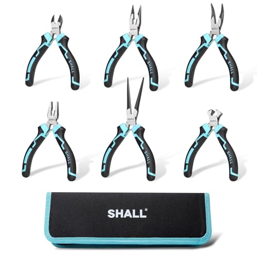 SHALL 6-tlg. Mini-Zangen-Set – Inkl. Drahtschneider, Seitenschneider, Elektrikerzange, Spitzzange, Langzange und gebogene Spitzzange – für Elektronik & DIY