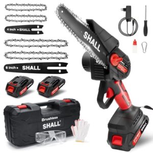 SHALL Tragbare Mini-Kettensäge, Bürstenlosen Motor 21 Volt, 2 Schnelllade-Akkus, 4 Ketten, Äste schneiden, Gartenarbeit, beste Wahl für Ehemann, Vater, Holz-Heimwerker-LiebhaberSHALL Tragbare Mini-Kettensäge, Bürstenlosen Motor 21 Volt, 2 Schnelllade-Akkus, 4 Ketten, Äste schneiden, Gartenarbeit, beste Wahl für Ehemann, Vater, Holz-Heimwerker-Liebhaber