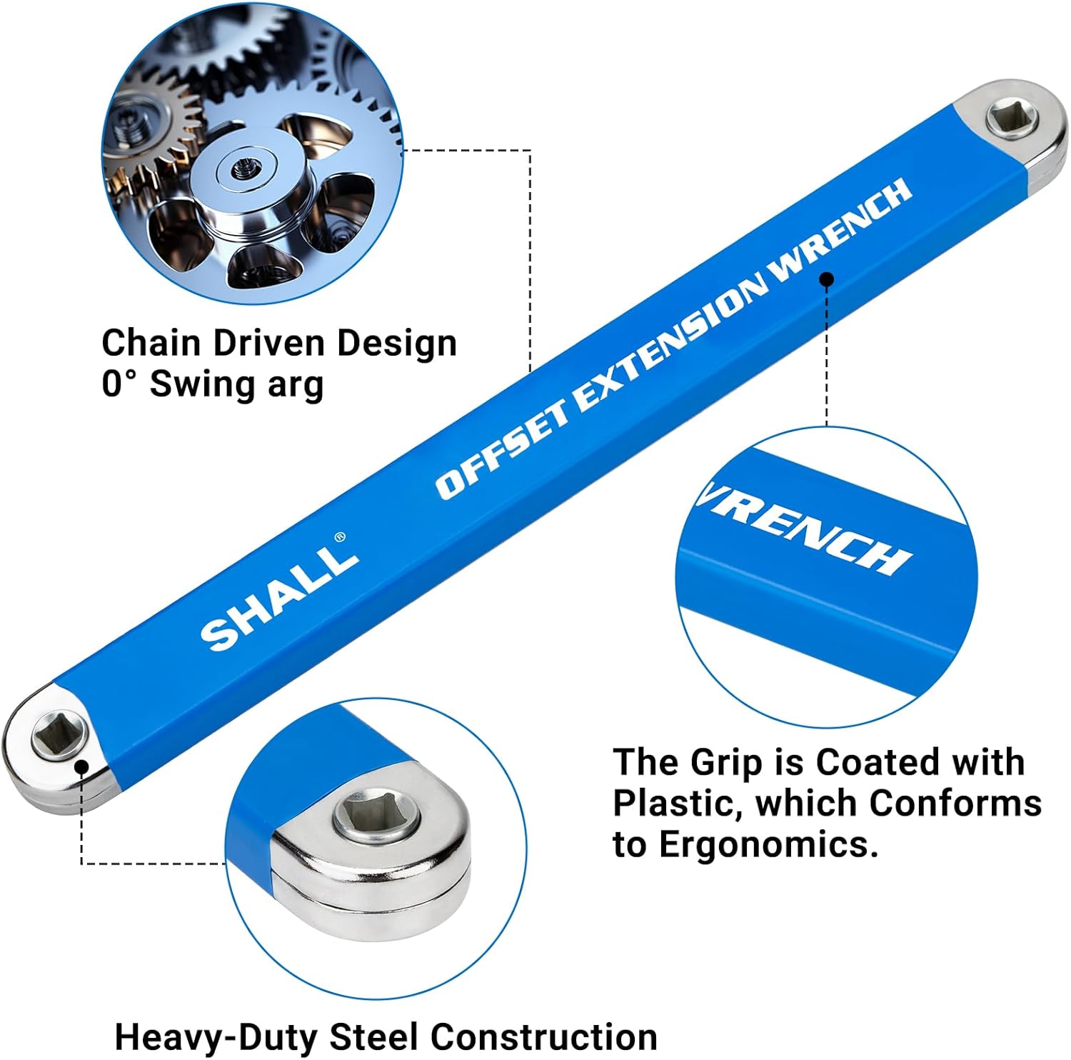 Der Shall Versetzter Verlängerungs-Schlüssel ist ein unverzichtbares Helferlein für Mechaniker und versierte Schrauber, die regelmäßig an schwer zugänglichen Stellen wie engen Motorräumen oder hinter Sanitärinstallationen arbeiten. Mit seiner flachen Bauweise und dem cleveren Kettenantrieb holst du dir die nötige Reichweite direkt dahin, wo herkömmliche Knarren den Dienst quittieren.