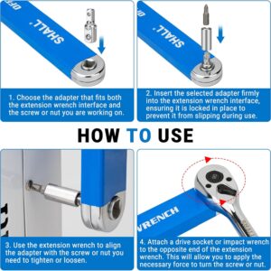 Shall Versetzter Verlängerungsschlüssel, 15,4 Zoll (39 cm), mit 1/2 Zoll, 1/4 Zoll und 3/8 Zoll Vierkantantriebsadaptern und 10 Universal-Bits