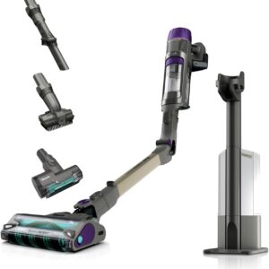 Shark PowerDetect Akku-Staubsauger mit Absaugstation, bis 70 Min. Laufzeit, kabellos, beutellos, für Tierhaare, Allergiker, Teppich und Hartböden, mit Knickgelenk-Rohr, weiß/grau, IP3251EUT