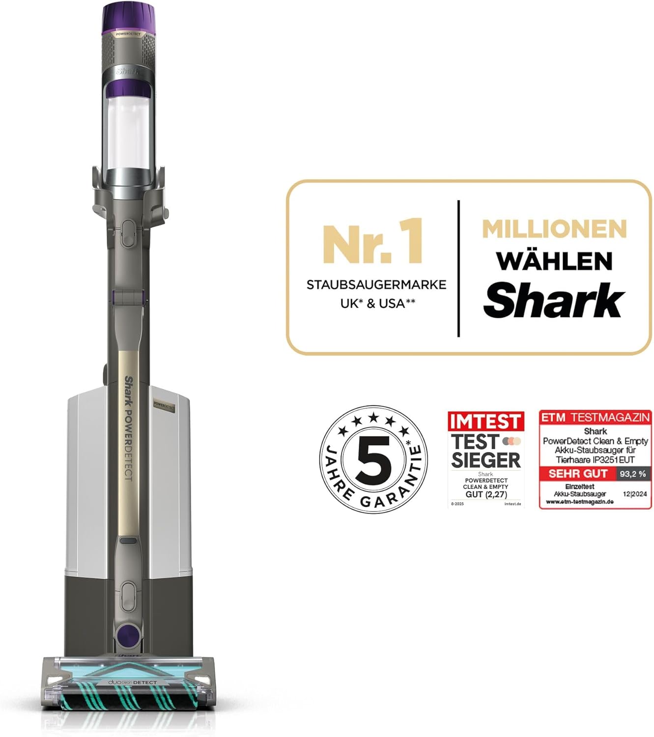 Shark PowerDetect Akku-Staubsauger mit Absaugstation, bis 70 Min. Laufzeit, kabellos, beutellos, für Tierhaare, Allergiker, Teppich und Hartböden, mit Knickgelenk-Rohr, weiß/grau, IP3251EUTShark PowerDetect Akku-Staubsauger mit Absaugstation, bis 70 Min. Laufzeit, kabellos, beutellos, für Tierhaare, Allergiker, Teppich und Hartböden, mit Knickgelenk-Rohr, weiß/grau, IP3251EUT