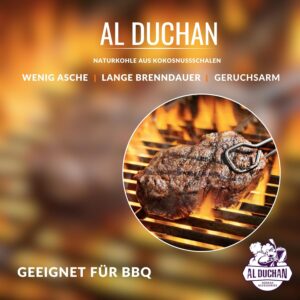 - 🔥 Exklusive Premium Kohle – Al Duchan steht für seinen herausragenden Ruf der ihm vorauseilt. Unsere Kohle zeichnet sich durch Festigkeit, wenig Aschebildung, geringe Geruchsentwicklung, sowie KEINEN Eigengeschmack aus.