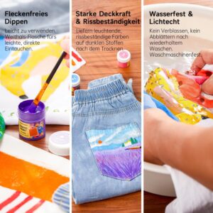 - • Vielseitige Materialkompatibilität: Ob Baumwolle, Jeans oder synthetische Fasern – die Farben haften auf verschiedensten Textiluntergründen.