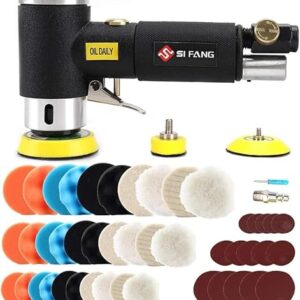 SI FANG 25/50/75mm Mini Poliermaschine Druckluft Exzenterschleifer, Mit 60tlg Mix Grit Schleifpapier, druckluft schleifgerät für auto Polieren