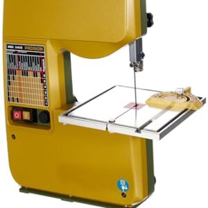 Proxxon 27172 MICRO – Bandsäge MBS 240/E – Massives Hauptgehäuse aus verripptem Alu-Druckguss (keine Stahlrohr- oder Blechkonstruktion). Doppelt kugelgelagerte Rollen aus Aluminium – Stabiler Tisch mit plangefräster Arbeitsfläche, Nut für Gehrungsanschlag (für Gehrungsschnitte bis 45° schwenkbar).