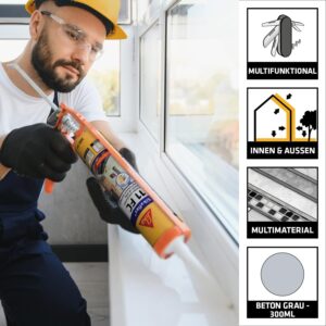 - Dauerhafte Haftung: Klebt und dichtet Beton, Mauerwerk, Holz und Metall sicher, ohne dass du verschiedene Spezialkleber brauchst.