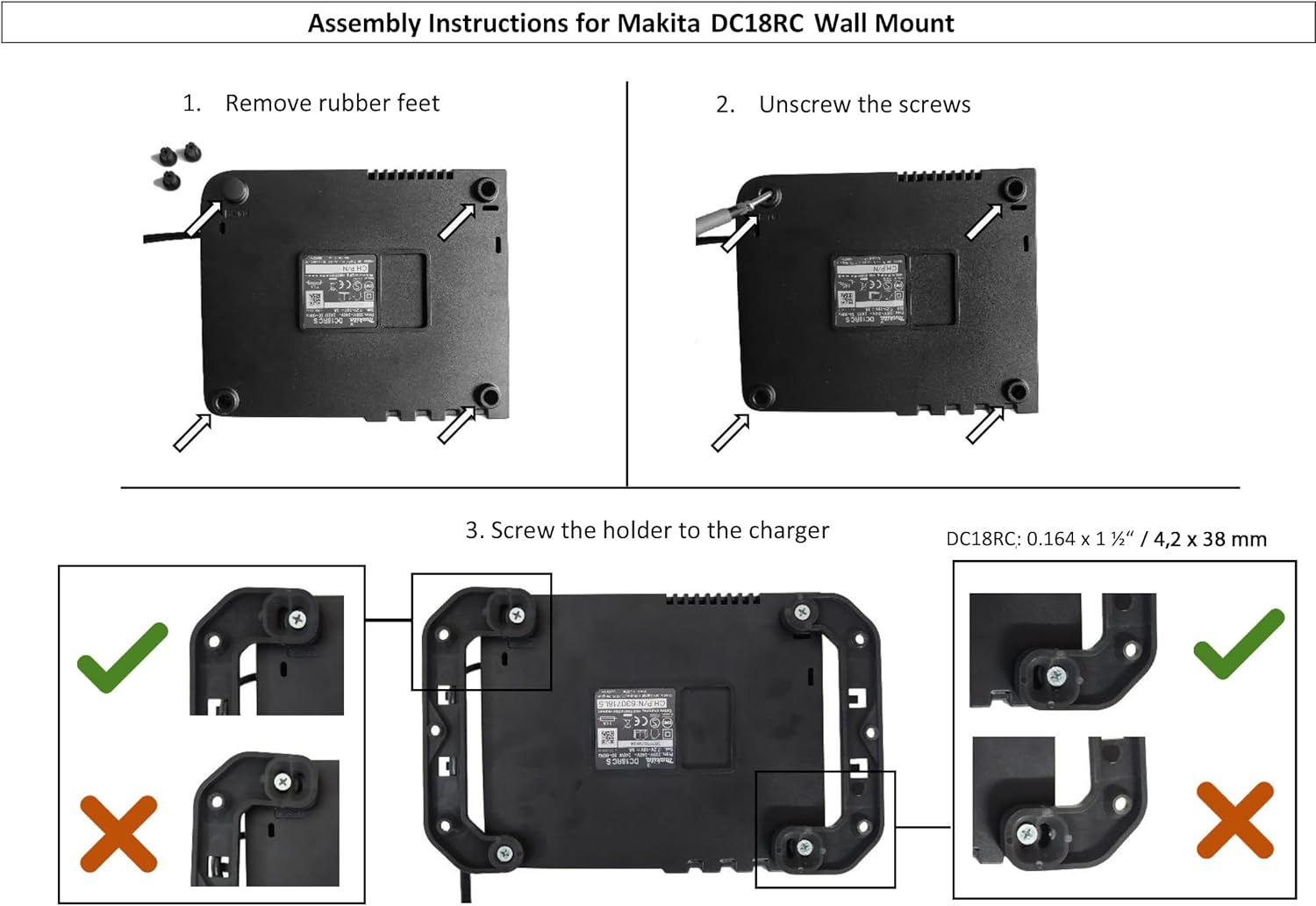 Das Produkt ist explizit als Halter für das Makita DC18RC Ladegerät konzipiert. Da keine weiteren technischen Daten vorliegen, wird empfohlen, den Halter nur für das spezifizierte Modell zu verwenden, um eine sichere und passgenaue Montage zu gewährleisten.