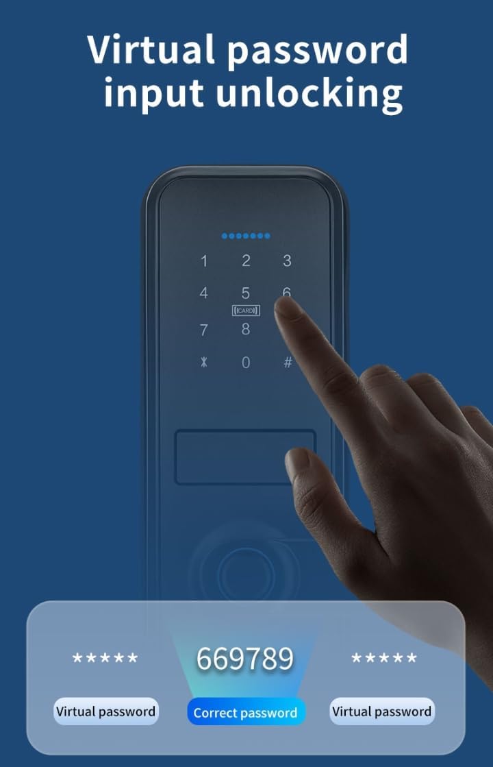 - Manipulationssicherer Schutz: Durch die Virtual Password Funktion gibst du korrekte Ziffernfolgen inmitten beliebiger Zahlen ein, um neugierige Blicke beim Tippen ins Leere laufen zu lassen.