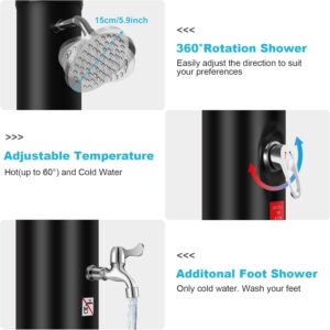 Solar Gartendusche 40Liter -Solardusche mit 360° Drehbarem Duschkopf und Fußhahn, Einstellbare Temperatur Aussendusche Solar dusche für Garten Pool Camping Hinterhof