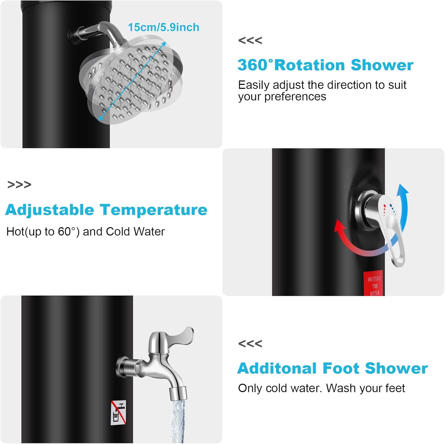 • Individuelle Temperatureinstellung: Über die Einhebelmischbatterie lässt sich das Wasser präzise von kalt bis zu 60°C mischen, was bei Solar-Modellen nicht immer Standard ist.