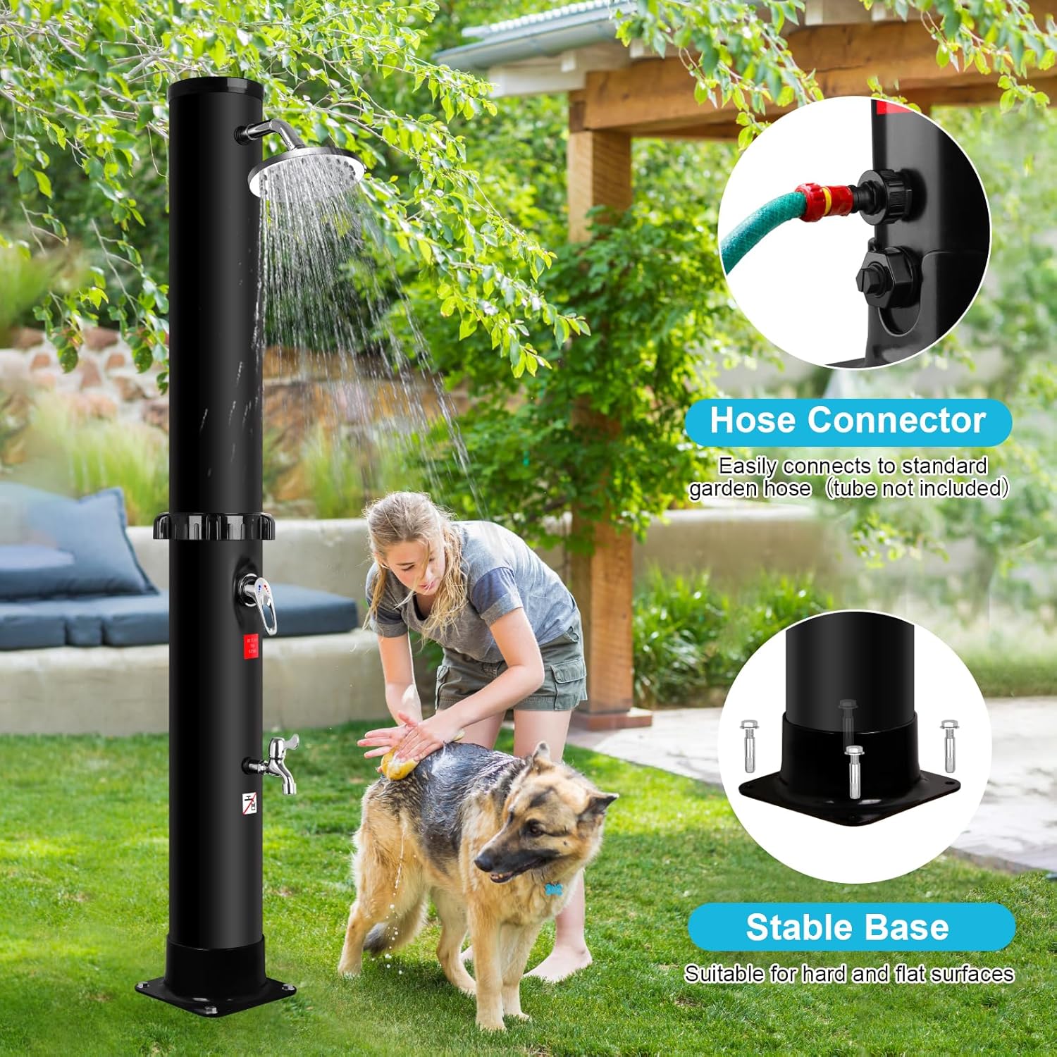 Diese Solar Gartendusche 40Liter -Solardusche ist die ideale Lösung für alle, die nach der Gartenarbeit, dem Poolbesuch oder beim Camping nicht mit eiskaltem Wasser vorliebnehmen wollen. Sie richtet sich an Hausbesitzer und Outdoor-Enthusiasten, die eine autarke, unkomplizierte Duschmöglichkeit ohne elektrische Installation suchen.