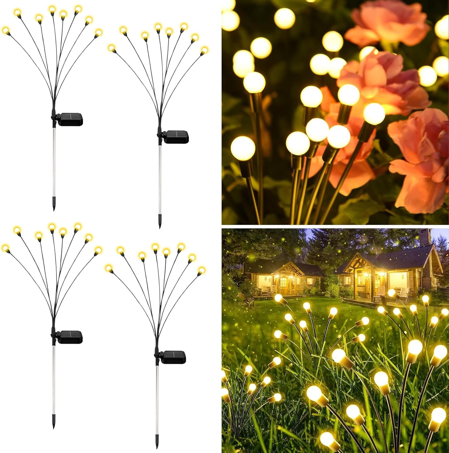 Diese 4er-Set Solar-Gartenleuchten im Glühwürmchen-Design sind die ideale Lösung für alle, die ihren Garten, Terrasse oder Hofbereich stimmungsvoll und energiesparend beleuchten möchten. Mit 8 LED pro Leuchte und flexiblen Drähten erzeugen diese Solarleuchten eine tanzende Lichtbewegung, die an natürliche Glühwürmchen erinnert und für eine einladende Atmosphäre sorgt. Perfekt für Gartenbesitzer, Hausbesitzer und alle, die ohne Stromkosten und Verkabelung für stimmungsvolle Außenbeleuchtung sorgen möchten.