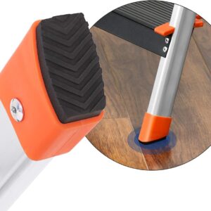Die Leiter bietet durch ihr stabiles Aluminiumgestell eine hohe Sicherheit bei der Arbeit. Zusätzlich sorgen die Anti-Rutsch-Füße mit Gummiummantelung für einen festen Stand ohne Wackeln, was ein konzentriertes Arbeiten ermöglicht.