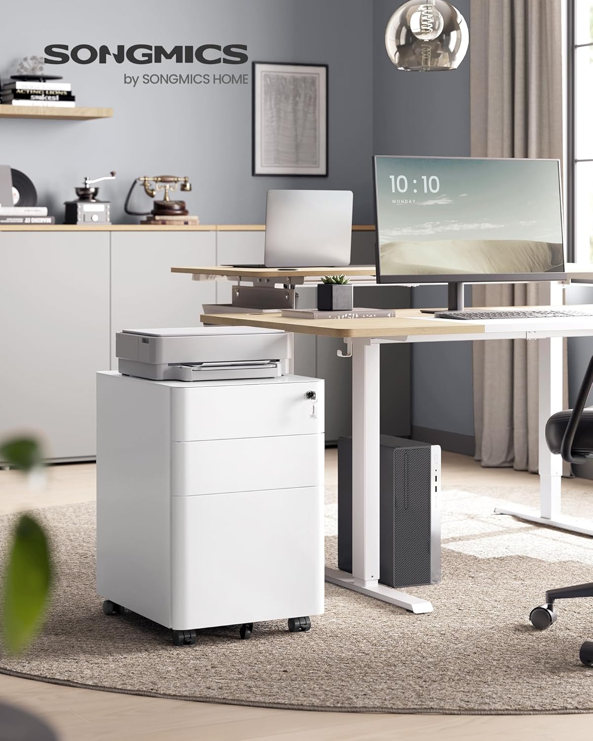 - Sortiert aufbewahren: 2 kleine Schubladen bieten Platz für Kopfhörer und Notizbücher, 1 große Schublade eignet sich für Aktenordner sowie ein herausnehmbarer Schubladen-Einsatz für Büromaterial – für einen aufgeräumten Arbeitsplatz