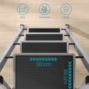 - • Rutschfestes Arbeiten: Geriffelte Antirutsch-Matten auf den Stufen sorgen für festen Halt deiner Schuhe, selbst bei der Arbeit in der Garage oder bei staubigen Bodenverhältnissen.