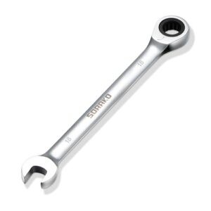 SORAKO Ratschenschlüssel 18mm, Schraubenschlüssel Maulschlüssel Ringmaulschlüssel aus CR-V mit mattierter ChromoberflächeSORAKO Ratschenschlüssel 18mm, Schraubenschlüssel Maulschlüssel Ringmaulschlüssel aus CR-V mit mattierter Chromoberfläche