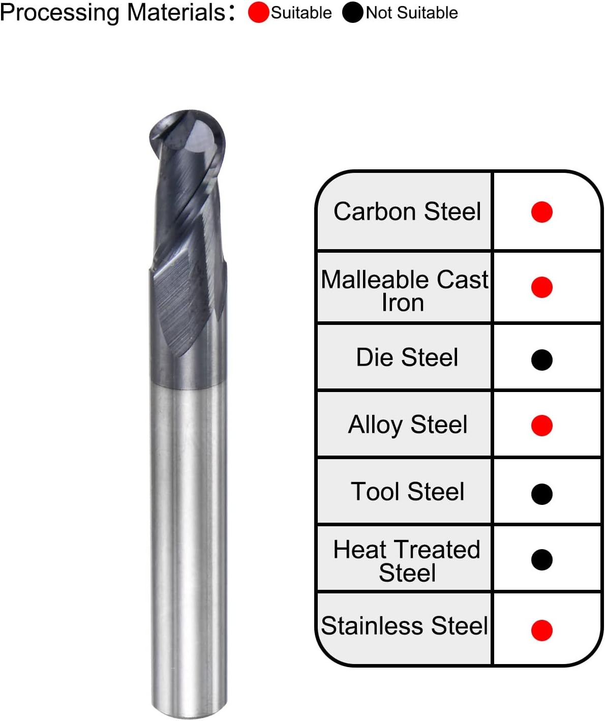 Dieser sourcing map Kugelkopffräser besteht aus hochwertigem VHM (Vollhartmetall) und bietet eine Schnitthärte von HRC45, was ihn für präzise Fräsarbeiten geeignet macht. Mit einem Schneidradius von 3 mm und einer Gesamtlänge von 50 mm ist er robust konstruiert. Das Produkt erfreut sich mit einer Bewertung von 4,6 Sternen einer hohen Kundenzufriedenheit.
