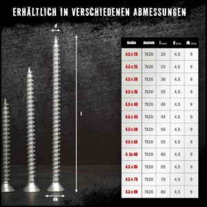 Spanplattenschrauben Edelstahl A2 – 4,5x100 mm, 100 Stück mit Vollgewinde, Torx, Senkkopf, ETA Zulassung, Edelstahlschrauben TX20Spanplattenschrauben Edelstahl A2 – 4,5×100 mm, 100 Stück mit Vollgewinde, Torx, Senkkopf, ETA Zulassung, Edelstahlschrauben TX20
