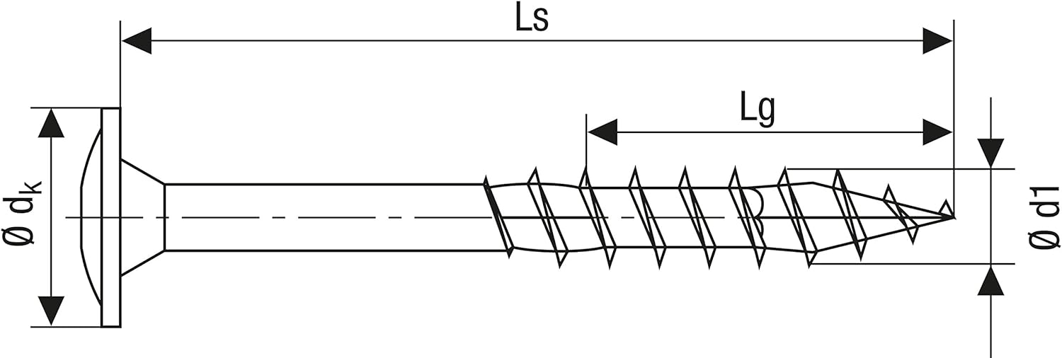 - Effiziente 4CUT-Spitze: Die vier Kanten an der Spitze verdrängen das Holz effektiv, was das Spalten bei randnahen Verschraubungen massiv reduziert und das Vorbohren in vielen Fällen überflüssig macht.