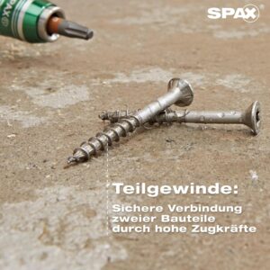 Wer einmal mit billigen Schrauben gearbeitet hat, die beim Eindrehen den Kopf abreißen oder den Bit runddrehen, weiß eine echte SPAX zu schätzen. Bei dieser 4 x 40 mm Variante fällt sofort auf, wie sauber das Gewinde in das Holz greift. Das Teilgewinde sorgt für eine enorme Anpresskraft, was bei der Montage von zwei Hölzern ein enormer Vorteil ist: Die Bauteile werden förmlich zusammengepresst, es entsteht kein unschöner Spalt zwischen den Kanthölzern.