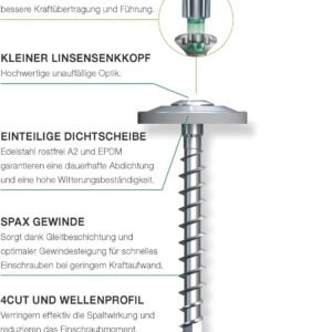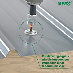 Die SPAX Spenglerschraube mit 4,5 x 35 mm ist speziell für Dachdecker, Spengler und Fassadenbauer entwickelt, die Befestigungen im direkt bewitterten Außenbereich benötigen. Die 60 Schrauben aus Edelstahl rostfrei A2 mit 15 mm Dichtscheibe garantieren dauerhafte, korrosionsbeständige Verbindungen bei Blech-, Dach- und Fassadenarbeiten. Dank 4CUT-Spitze und T-STAR plus T20 Antrieb gelingt die Montage schnell und ohne Vorbohren.