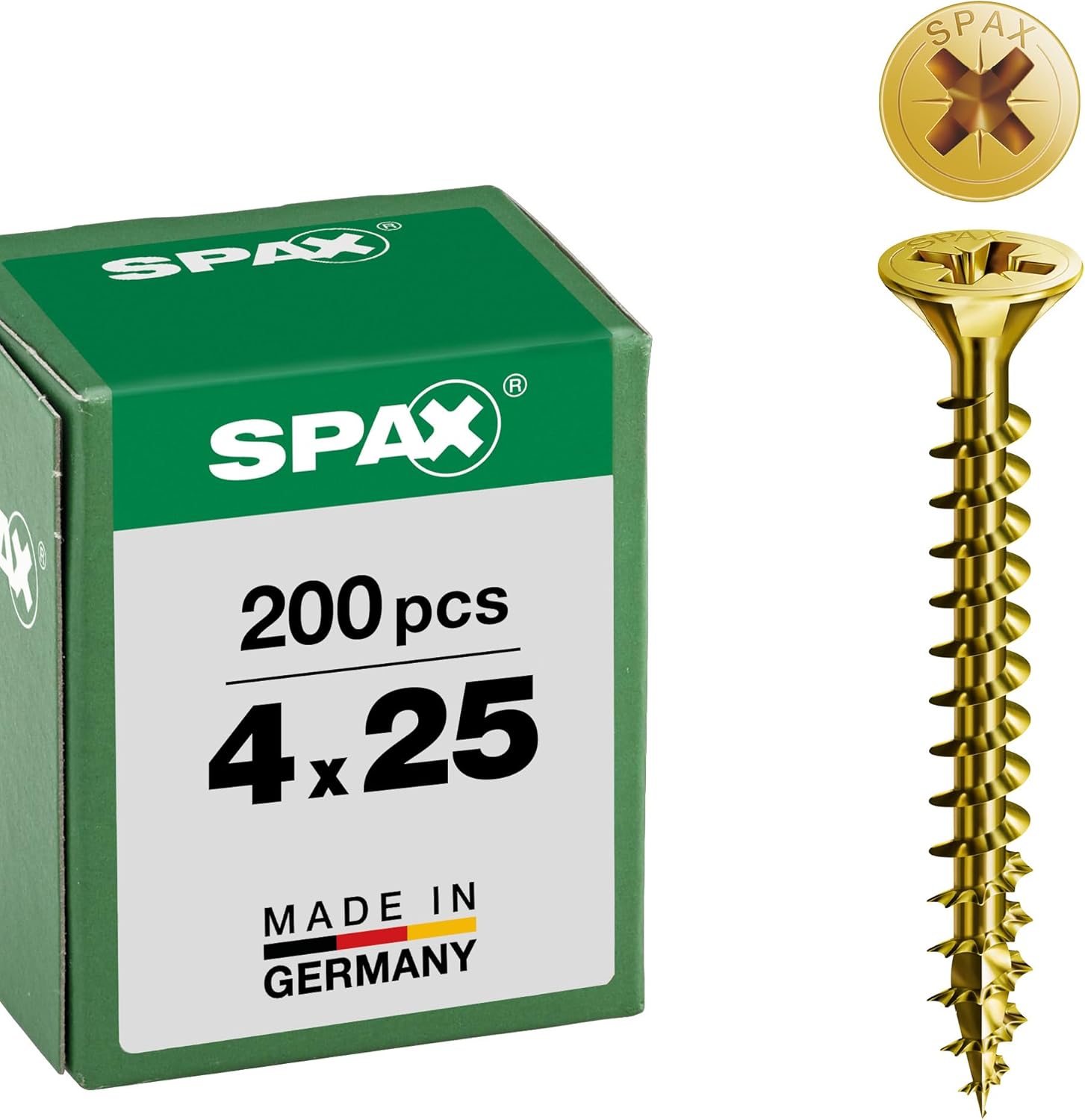 SPAX Universalschraube, 4,0 x 25 mm, 200 Stück, Kreuzschlitz Z2, Senkkopf, Vollgewinde, 4CUT, YELLOX A2L, gelb verzinkt, 1081020400253 SPAX Universalschraube, 4,0 x 25 mm, 200 Stück, Kreuzschlitz Z2, Senkkopf, Vollgewinde, 4CUT, YELLOX A2L, gelb verzinkt, 1081020400253